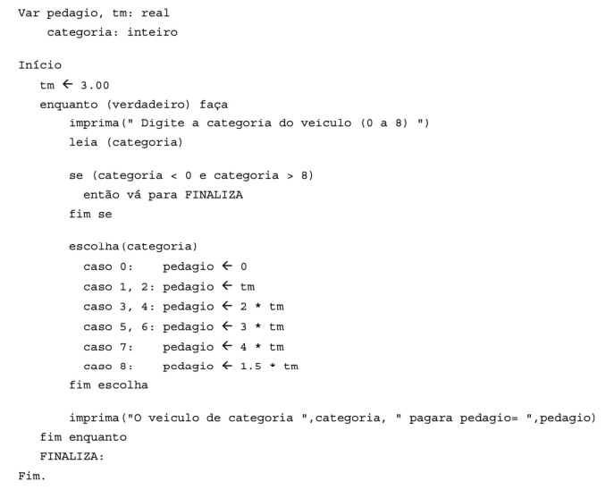 Considere o algoritmo em pseudocódigo abaixo.