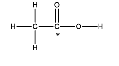 Observe a fórmula estrutural plana da molécula do ácido acético.