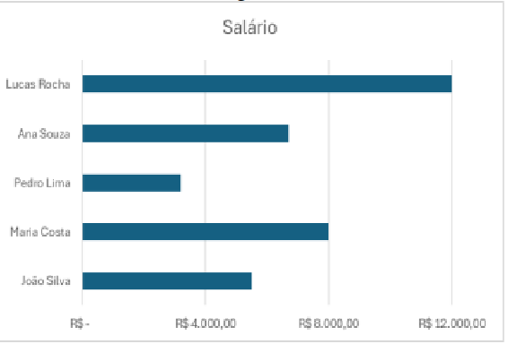 Objetivando facilitar a visualização dos salários, esse usuário decide criar um gráfico. No entanto, ele está com dúvidas sobre qual tipo de gráfico utilizar para exibir esses dados.