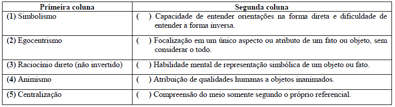 Sobre o desenvolvimento intelectual da criança, relacione a primeira coluna com a segunda.