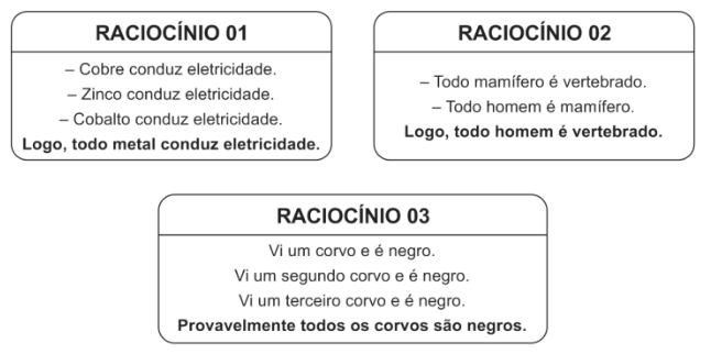 Assinale a opção que identifica corretamente exemplos de raciocínios indutivos.