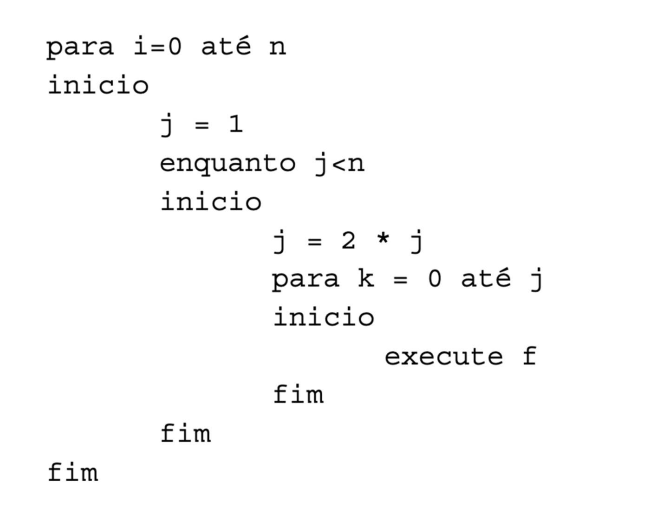 Calcule a complexidade do algoritmo, sabendo que a função f tem complexidade igual a O(n2).