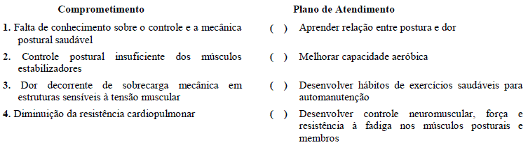 Sobre as diretrizes gerais de tratamento relacionadas à reeducação postural, correlacione a coluna da esquerda com a direita.