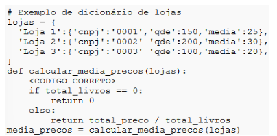 O trecho a seguir, em Python, calcula a média de preços de estoques de diversas lojas.