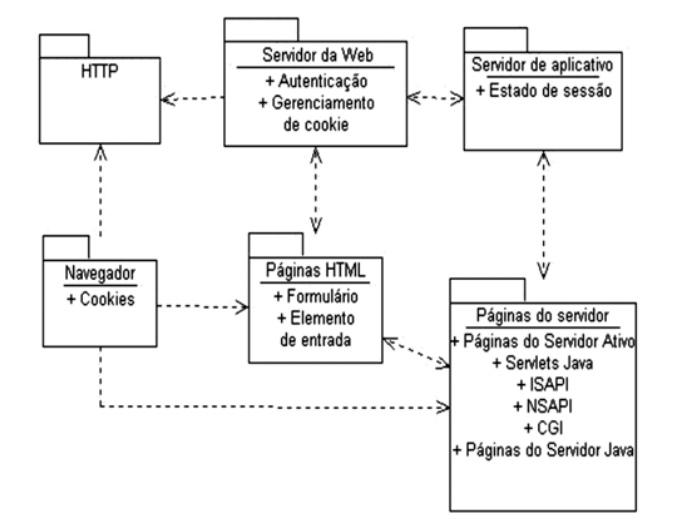 Uma aplicação web é composta por dois atores principais, o cliente e o servidor. Nesse contexto, a figura abaixo ilustra uma arquitetura para aplicativos baseados na Internet, para os quais pode-se garantir apenas a configuração mínima no cliente.